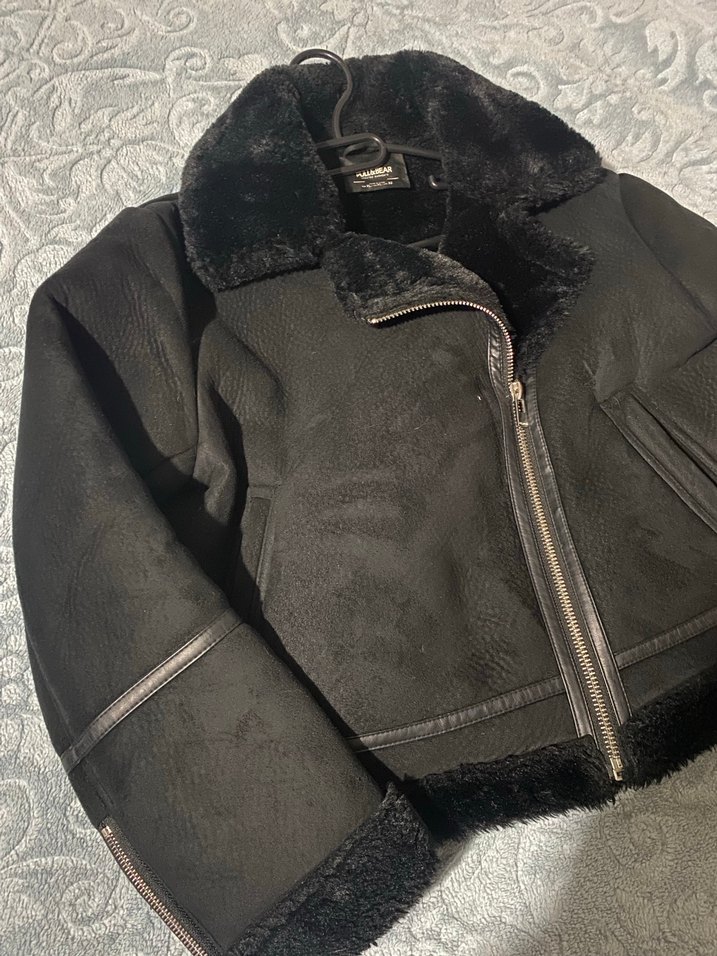 Siyah, kürklü detaylı, yumuşak deri biker ceket. Yaka ve manşetlerde kürk, çıtçıtlı kapama ve dar kesim bulunur.