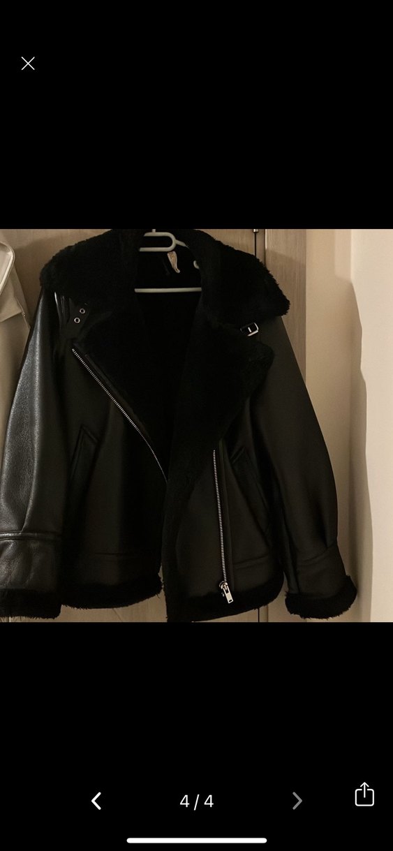 Ceplerdeki küçük soyulmalara bakıp alınız! Siyah deri biker ceket, kürk detaylı yakası ve manşetleriyle dikkat çeker. Notch yaka ve askılı kolları vardır. Günlük kullanıma uygun, midi boyda, şık ve sade tasarımlıdır.