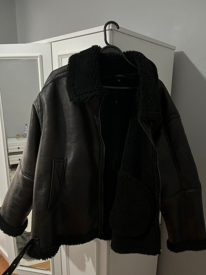 Trendyolmilla, kullanılmadı etiketi olmadığı için iade edilemedi. Kusuru sorunu yoktur. Siyah deri biker ceket, kürklü detaylı ve kesik yakalıdır. Fitted kesim, midi boy ve askılı kollara sahiptir, şık bir görünüm sunar.