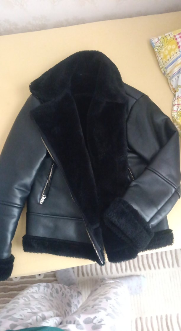 Parlak deri ve kürk detaylı, yakası ve etek ucu kürklü hiç bir defosu yok mont gibi giyilir çok sıcak tutuyo İstanbul'dan aldim markasını bilmiyorum