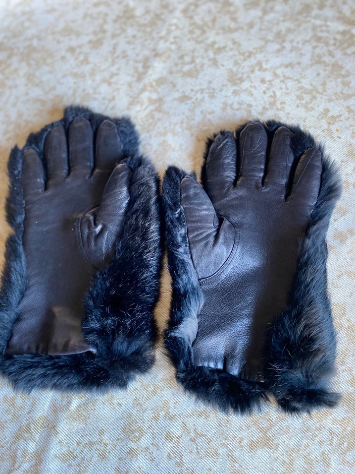 Siyah hakiki deri eldiven, kürk detaylarıyla sıcak ve gotik tarzda. Bohem ve retro görünüme uygun. İçi astarlıL beden için uygundur.