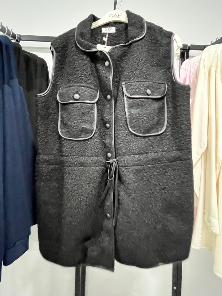 Ürün yeni etiketli mağaza ürünüdür hiçbir defosu yoktur. Siyah kürklü, deri kumaştan yapılmış, nakış detaylı, salaş kesim ve cepli kolsuz kadın yelek. Günlük kullanım için uygundur. 40 42 44 bedenleri mevcuttur.