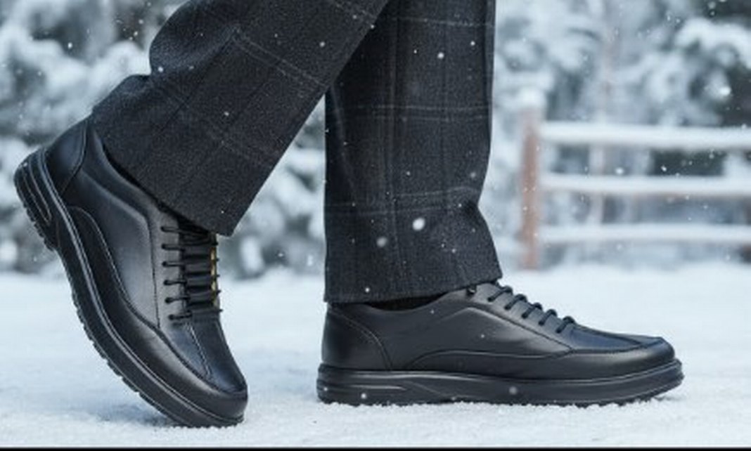 Kürklü detaylara sahip siyah erkek ayakkabı, iş ve sokak stili için uygundur. Desensiz yüzeyi ve sağlam tabanıyla kışa hazırdır. ❄️