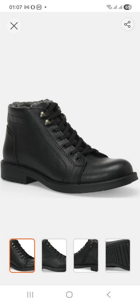 İç kısmı kürklü, siyah biker tarzı erkek botları. Kauçuk malzemeden üretilmiş, desen içermeyen yüzeye sahip, ofis kullanıma uygun klasik görünümlü botlar.