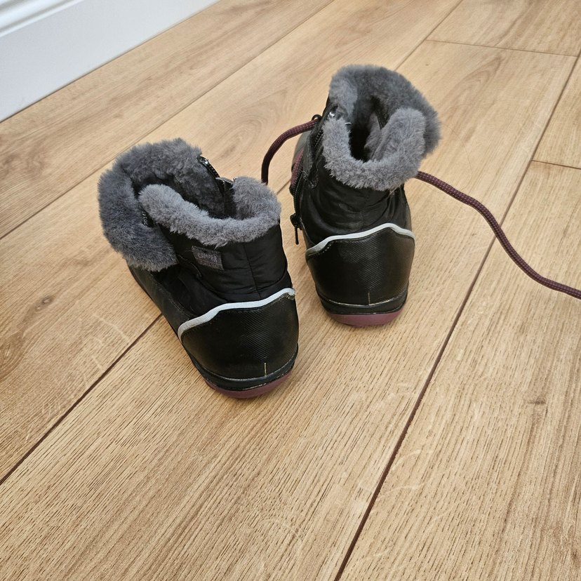 Gri kürklü, siyah lastik erkek çocuk botları, gotik tarzda ve desensiz yapıda. Moda öncüsü çocuklar için uygun.