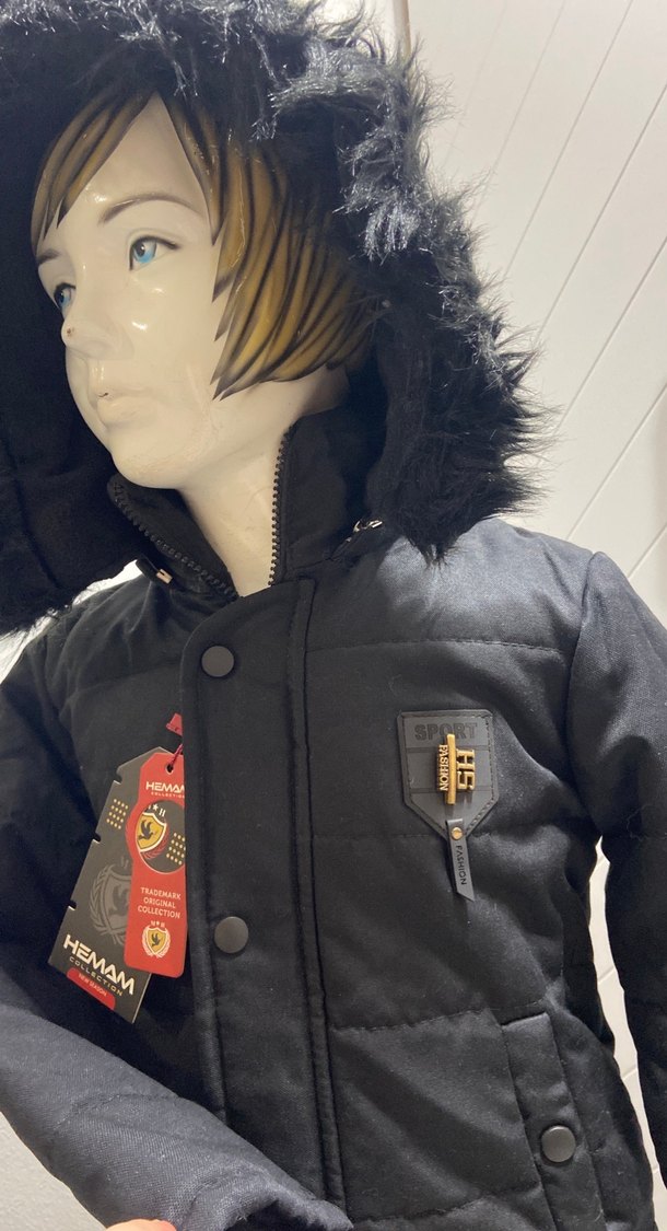 Siyah, kürklü kapüşonlu ve baskılı detaylı, yumuşak fleece kumaştan yapılmış erkek çocuk montu. HEMAM markalı etiketler bulunur. Etikette 7 yaş yazıyor ancak 6yaşa uyumlu Mağazamda farklı ürünler de mevcuttur. Bakmanızı tavsiye ederim❤️