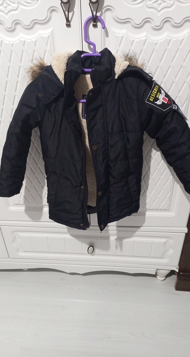 Erkek çocuklar için siyah, kürklü detaylı, yumuşak iç astarlı, arka boy 55 cm ön boy 52 cm beden genişliği 36 cm sokak stiline uygun, . Kolunda amblem bulunur. son resimde belirttim tek sorunu biraz kumaştan ayrılmış ama kullanıma engel değildir kalınlığı güzel mont güzel kaçırmayın