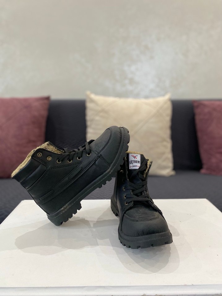 Siyah kauçuk malzemeden yapılmış, kürk detaylı erkek botları. Dayanıklı taban ve bağcıklı tasarıma sahip, günlük sokak tarzı için uygundur. 38 39 40 numaraları mevcuttur