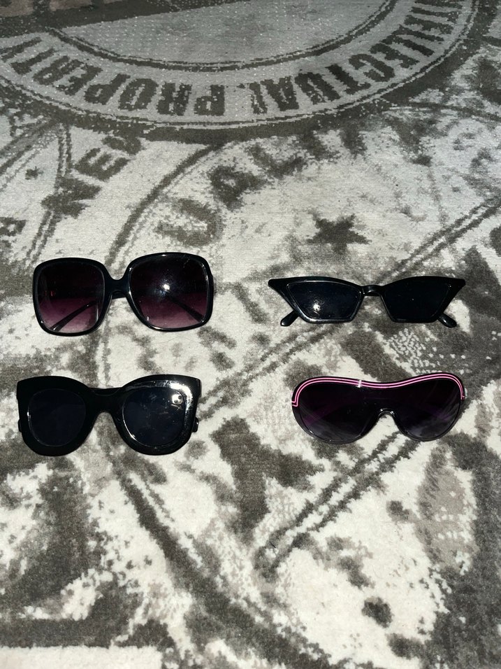 Dört adet siyah kadın güneş gözlüğü seti, gotik ve retro tarzlarda, bazıları kürk detaylı. Bohem ve hippie stiline uygun. ️ ADET FİYATI