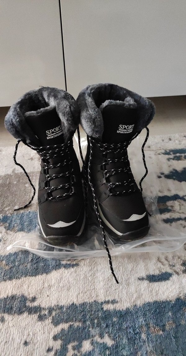 Siyah renkte, kürklü detaylı, kadın botları. Kauçuk malzemeden üretilmiş, bağcıklı ve outdoor kullanım için uygun.su geçirmez 1 kez giyildi sıfır ayarında ayağıma dar geldiği için satıyorum TEMU dan almıştım geri iade edemedim.