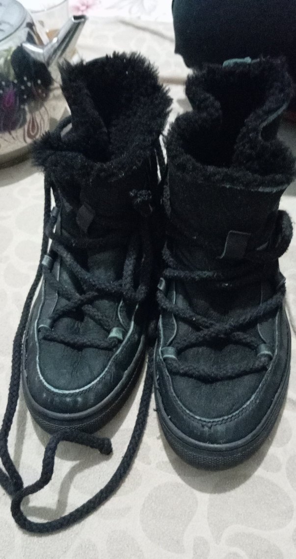 Siyah renkte, kauçuk malzemeden yapılmış, kürklü detaylara ve dolgu topuklu kadın botları. Desensiz ve gotik tarzda, dış mekan kullanımı için uygundur.