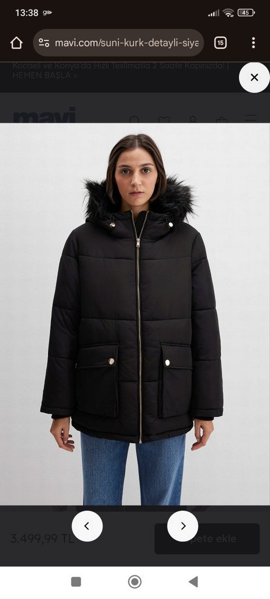 Siyah renkte, kürklü kapüşon ve kesimli yaka detaylı kadın kış montu. Uzun kollu, orta boy ve rahat kesimdir. Yumuşak ve sıcak tutan kumaştan üretilmiştir.