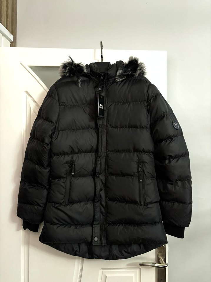 Fitted kesim siyah kışlık mont, kapüşonunda kürk detayları ve kesimli yaka ile dikkat çekiyor. Yumuşak ve sıcak fleece kumaştan, günlük kullanım için uygun, rahat bir sokak stili sunuyor. Normal midi uzunlukta ve askılı kolludur. marka muadili