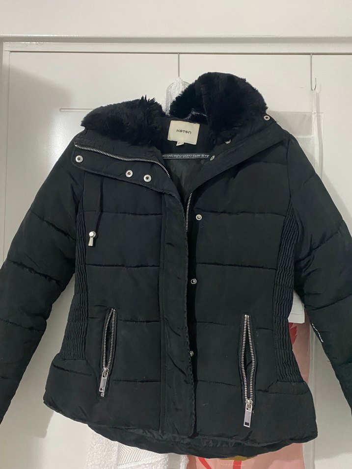 Kürklü detaylı, fitted kesim siyah kışlık mont. Notch yakalı, fermuarlı cepler ve midi uzunlukta, rahat ve şık..Aşırı sıcak tutuyor ufak bir tadilat gerekiyor bazanın altında durmaktan kolu deforme olmuş o yüzden uyguna koyuyorum