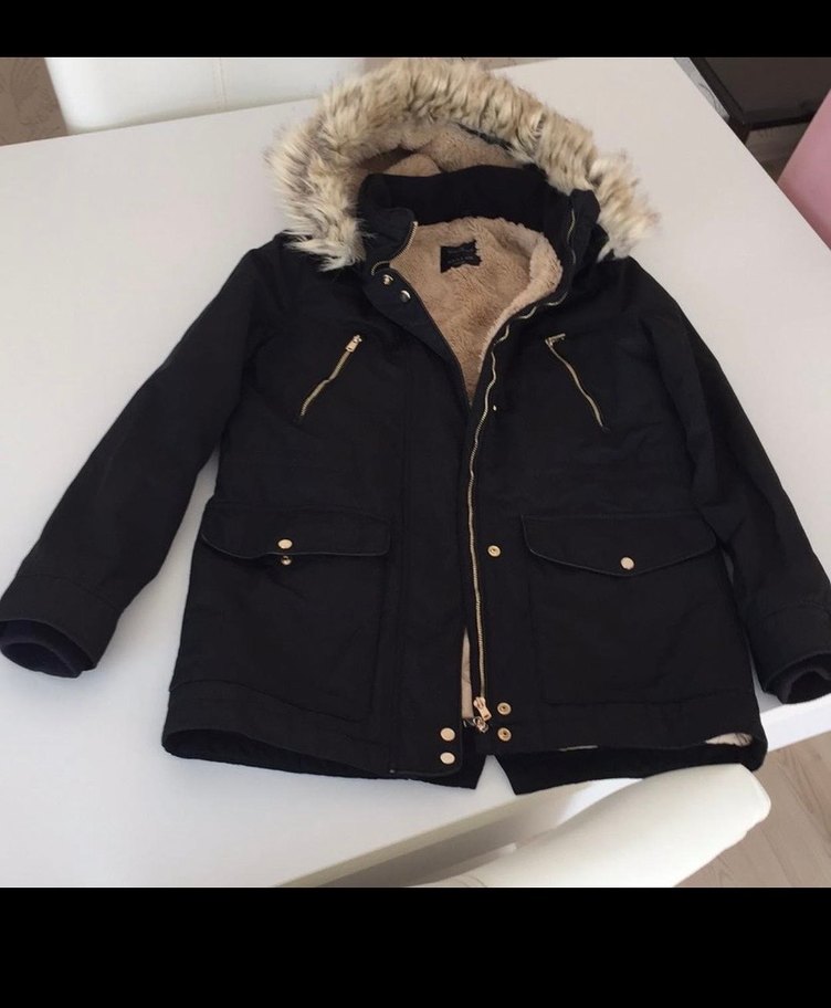 Siyah renkli, kürk detaylı kapüşonlu ve içi yumuşak kumaşla kaplı, normal boyda, uzun kollu, kesimi vücuda oturan kadın kışlık mont. Günlük kullanıma uygun, trend sokak stili. Şapkadaki kürk çıkıyor ayrıca şapkada çıkıyor çok kullanışlı artık bana dar geldiği için satıyorum