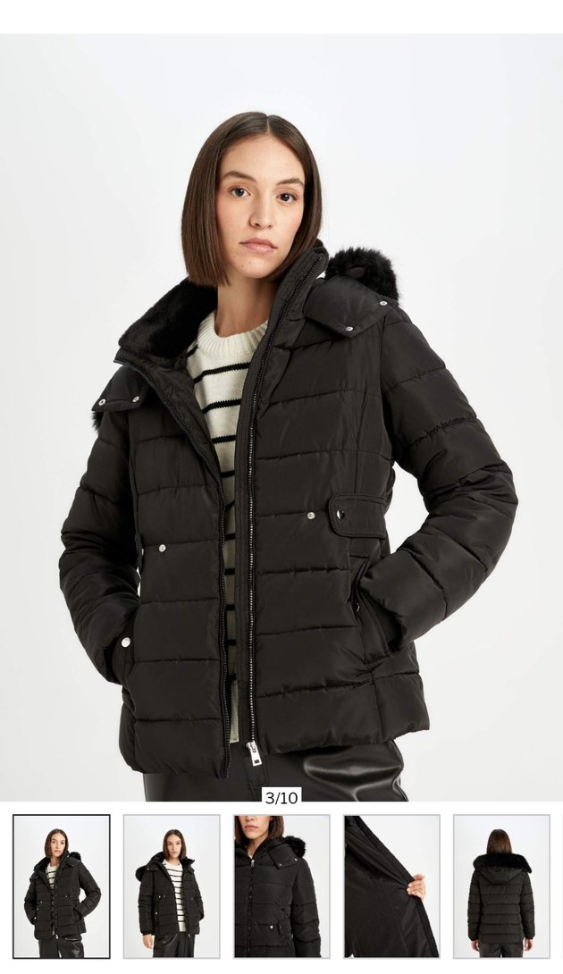 Siyah, kürklü detaylı, normal boy, fitted kesim kadın kışlık mont. Notch yaka ve askılı kollarıyla günlük kullanıma uygun, rahat ve şık sokak stili mont.
