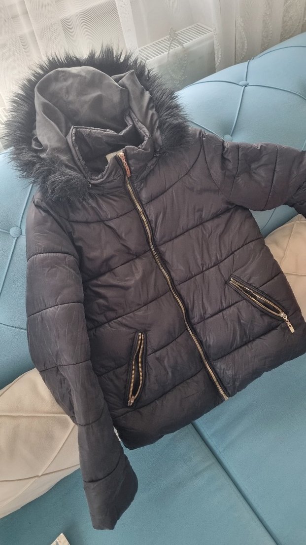Siyah Kürklü Kadın Kışlık Mont