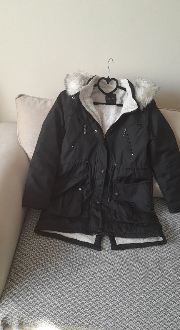 Siyah renkli, kürklü kapüşonlu kışlık mont, yumuşak tüylü astar ve geniş kesimle rahatlık sağlar. Midi boyda, günlük sokak stiline uygun bir tasarımdır. ❄️