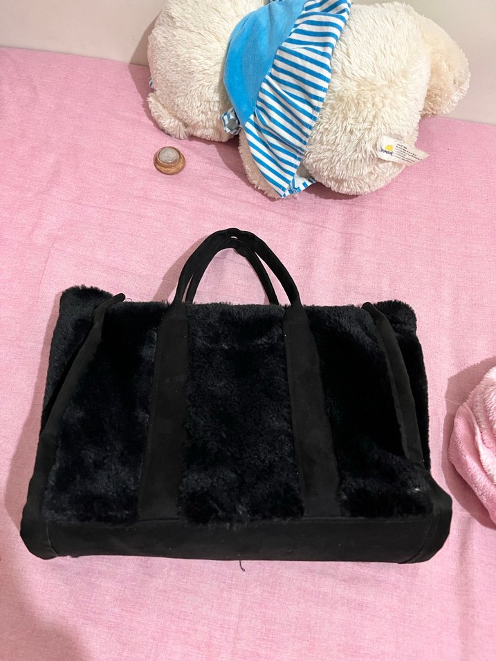 Siyah Kürklü Kadın Omuz Çantası omuz askısıda var