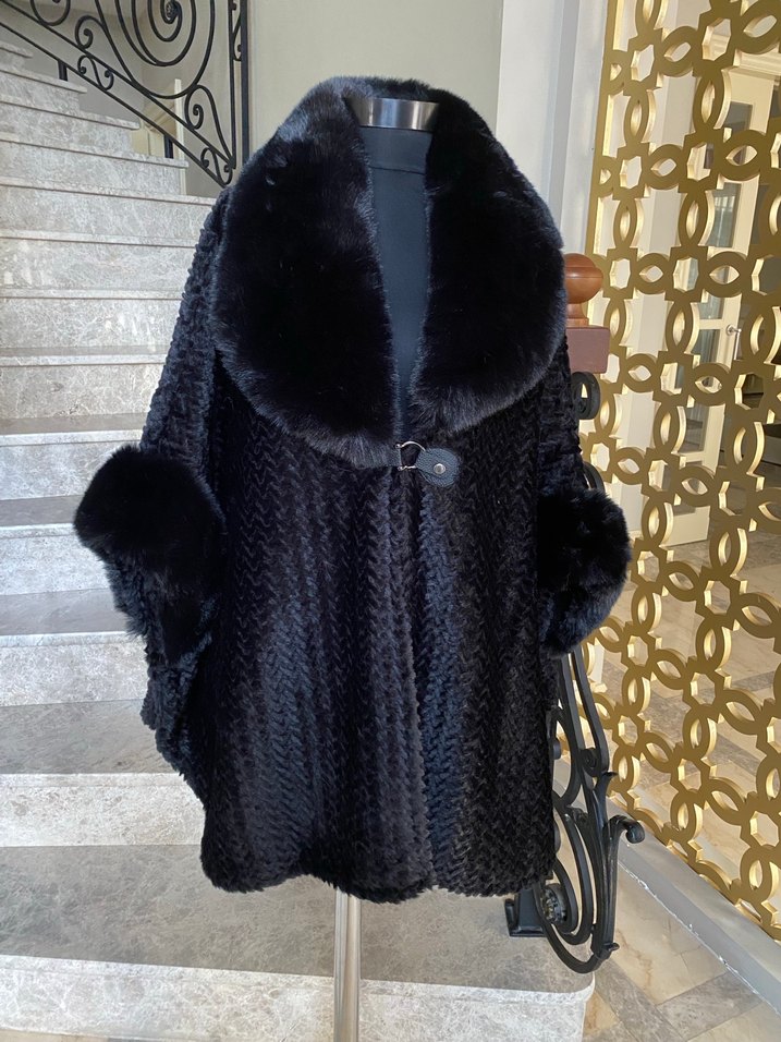 Siyah Kürklü Kadın Panço STD
