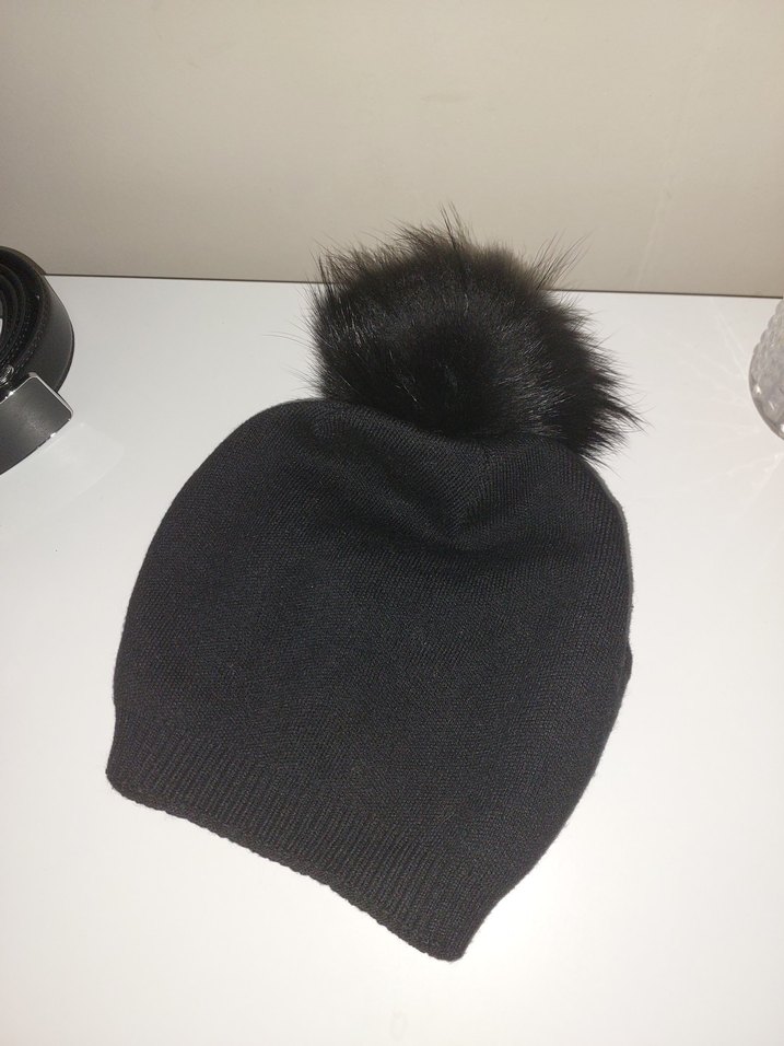 Siyah yün bere, kürk detaylı ponpon ile rahat ve gotik bir stil sunar. Basit ve koyu renkli tasarıma sahiptir.