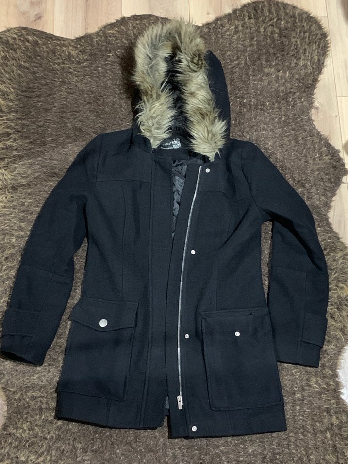 Siyah Kürklü Kapüşonlu Kadın Mont