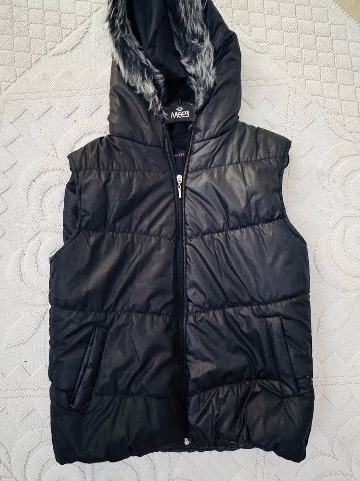 Siyah, kapüşonlu ve kürklü detaylı, kolsuz yelek. Yumuşak ve sıcak kumaştan, midi boy ve dar kesim. Günlük rahat kullanıma uygun.