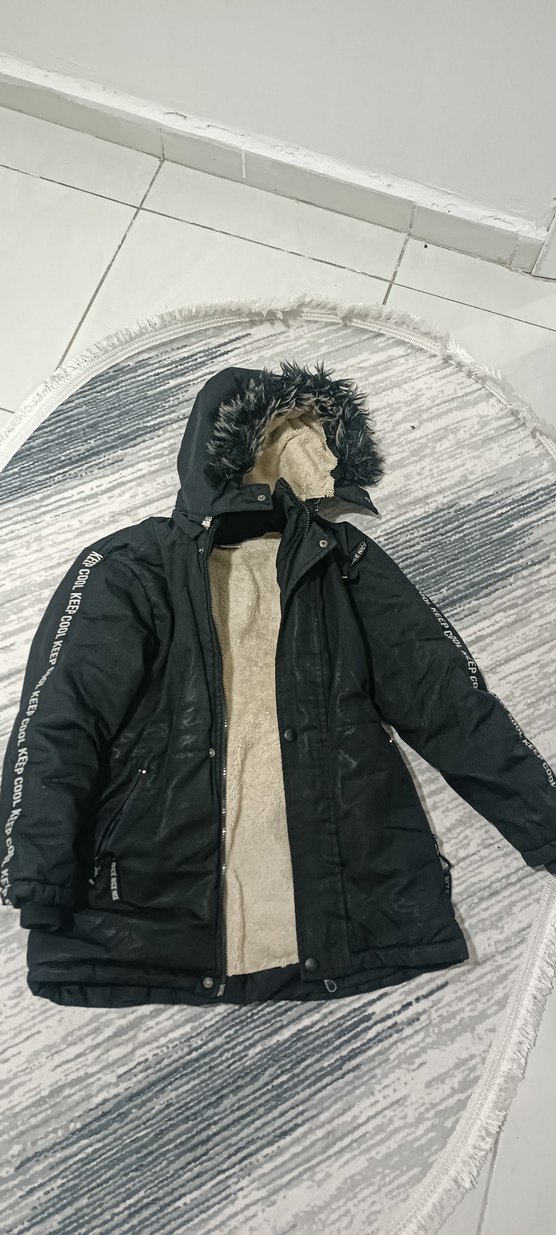 Siyah Kürklü Kışlık erkek çocuk Mont