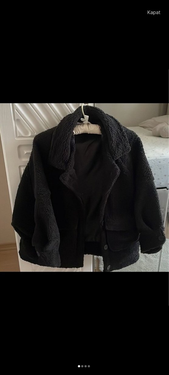 Bu siyah, bol kesim ceket yumuşak ve sıcak kumaş, kürk detayları ve çentikli yaka içerir. Uzun kollu ve normal midi boydadır, trendi günlük goth tarzına uygundur.