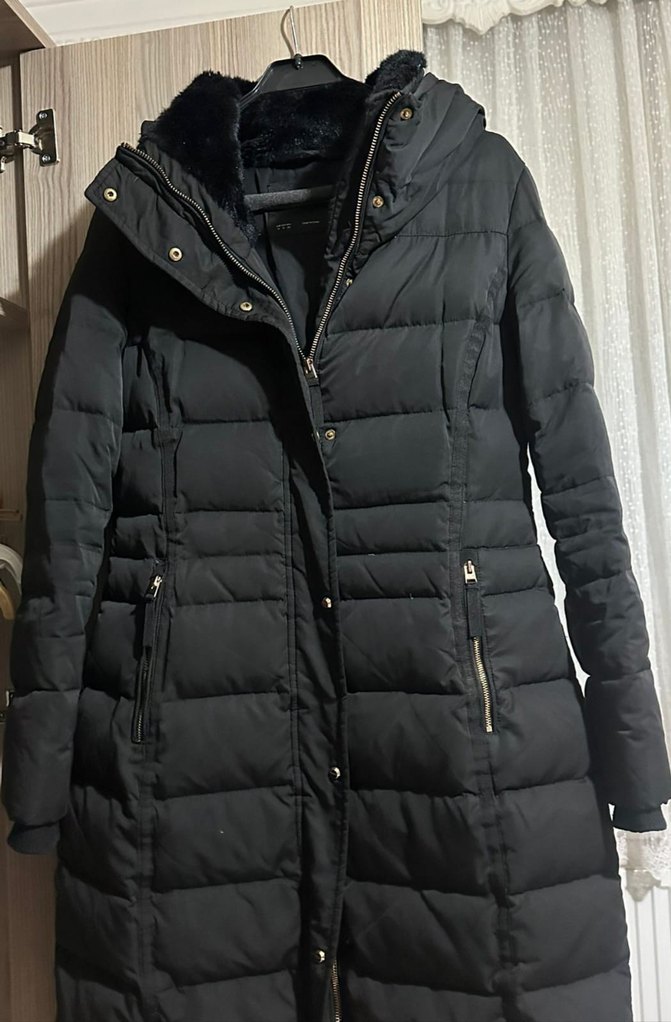 Fitted kesim siyah kışlık mont, kürklü detaylı ve yakası notched lapel. Strappy kollu, yumuşak ve sıcak kumaştan, günlük kullanıma uygun rahat bir streetwear tarzı sunar. ❄️