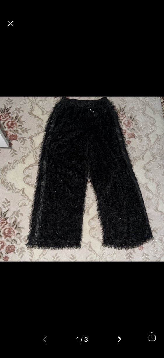 Siyah, sentetik kumaştan, kürk detaylı, bol kesim midi pantolon. Gotik tarzda, rahat ve parti için uygun. Bir defa kullandım çok tarz ve star bir parça temiz ve defosuz