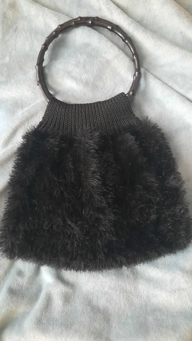 Bambu saplı, kürklü detaylı siyah örgü kadın çantası.el örgüsü Rahat dokusu ve gotik stiliyle günlük şıklığa uygundur.