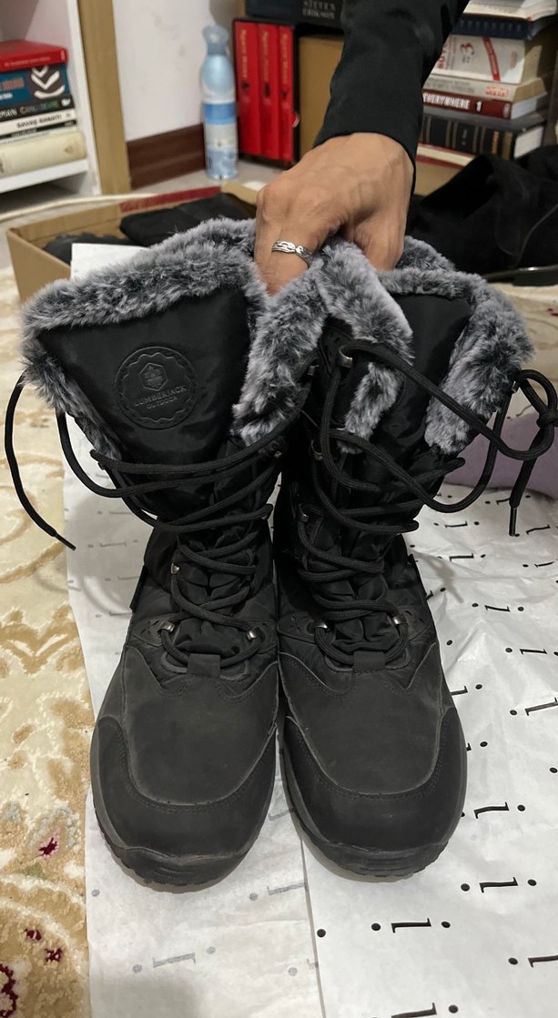 Siyah kauçuk botlar, yumuşak kürk detaylı iç yüzeyle sıcak tutar. Dış mekan sokak stili için uygundur, rahat ve trend görünümlüdür.