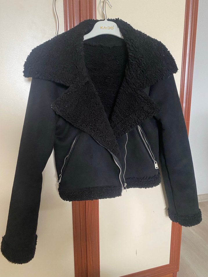 Siyah Kürklü Süet Kadın Ceket