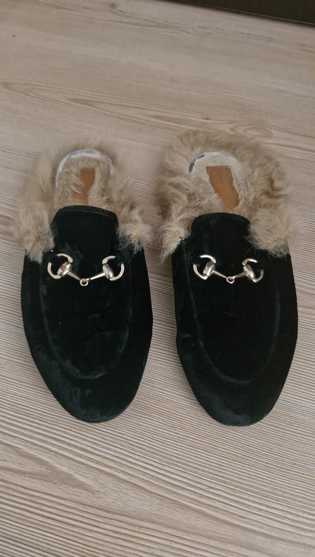 Siyah Kürklü Süet Kadın Terlik