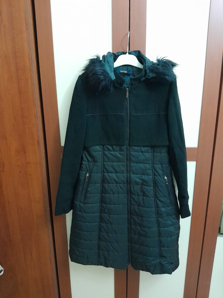 Siyah, kürklü yakalı, uzun ve fitted kesim kadın kışlık mont. Yumuşak ve sıcak kumaştan, goth ve rahat tarzı birleştirir. Uzun kollu ve fermuarlı, genç ve modaya uygun.