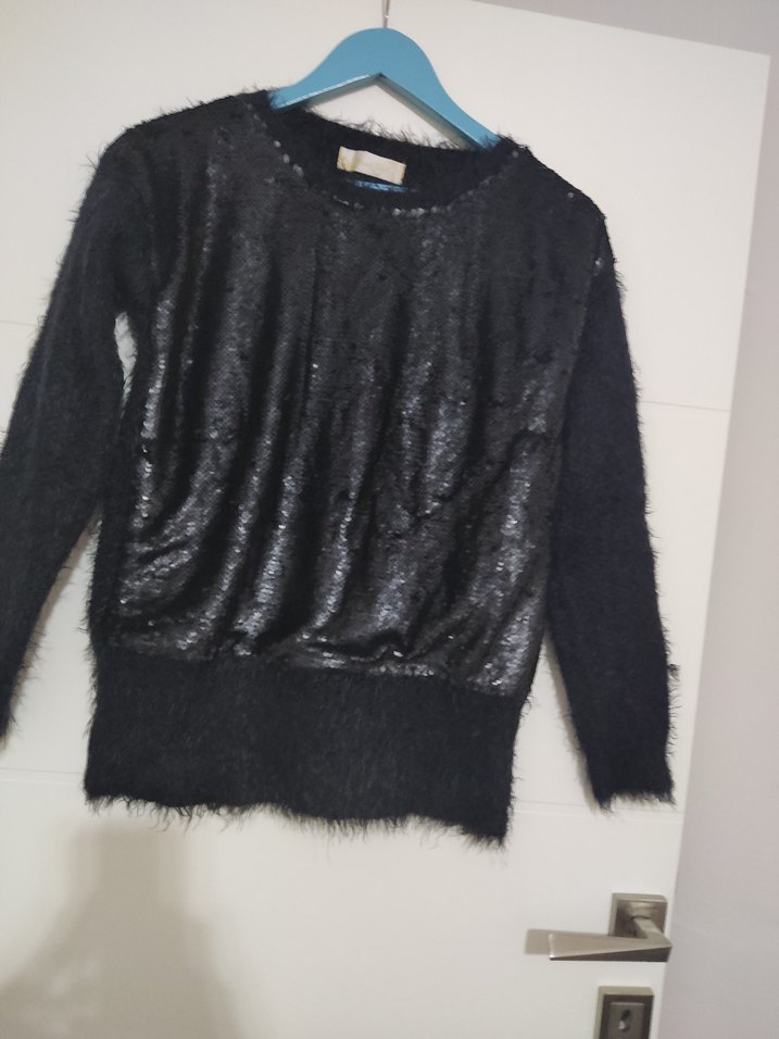 Siyah, kürklü detaylı, uzun kollu, bisiklet yaka, fitted kesim kadın kazak. Rahat ve gotik tarzıyla parti için uygun.