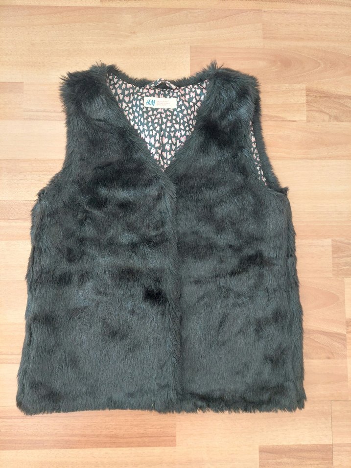 Siyah, kürklü ve V yaka tasarımlı, kolsuz kadın yeleği. Yumuşak sentetik kumaştan yapılmış, midi boy ve dar kesim. Rahat sokak stiline uygun.