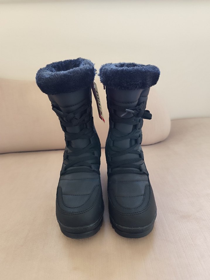 Kürklü detaylara sahip, bağcıklı siyah kız çocuğu botları, rahat iç yapısı ve yüksek topuklu tasarımıyla dış mekan ve sokak stili için uygundur.