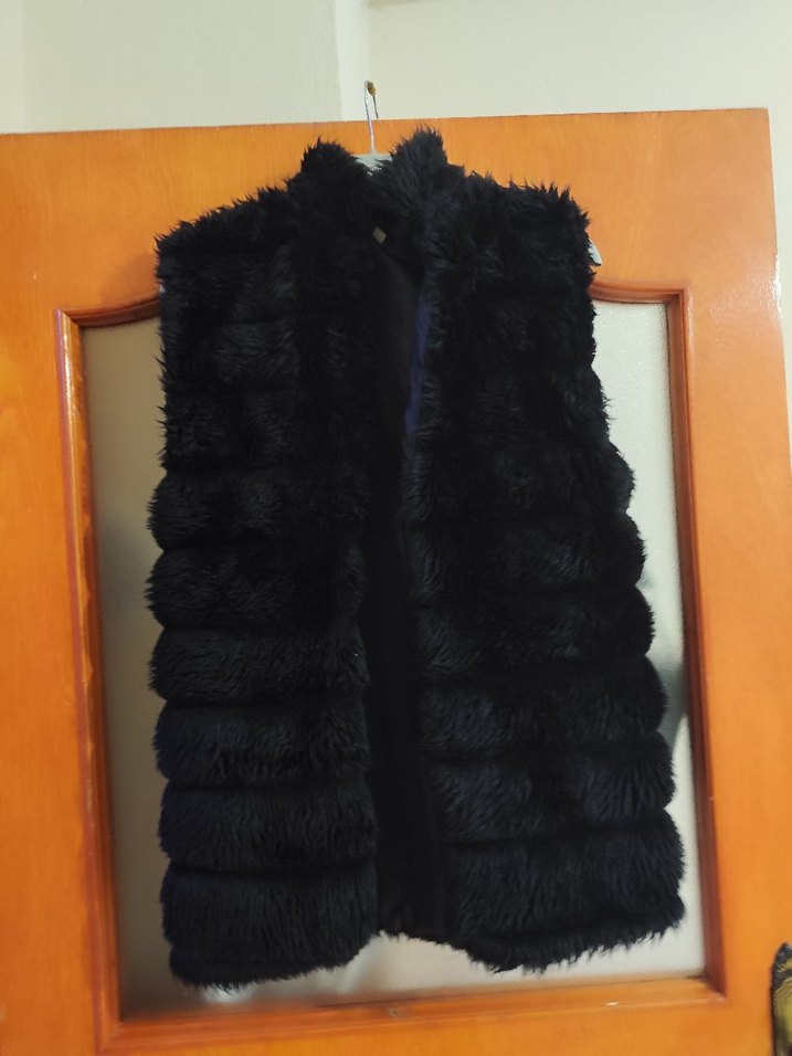 Siyah, kürklü ve yüksek yakalı kadın yeleği. Fitted kesim, kolsuz ve midi boyda, rahat ve sıcak kumaştan üretilmiştir. 2 kez giyildi tertemizdir sıfır üründen farkı yok 36-40 beden aralığı oluyor