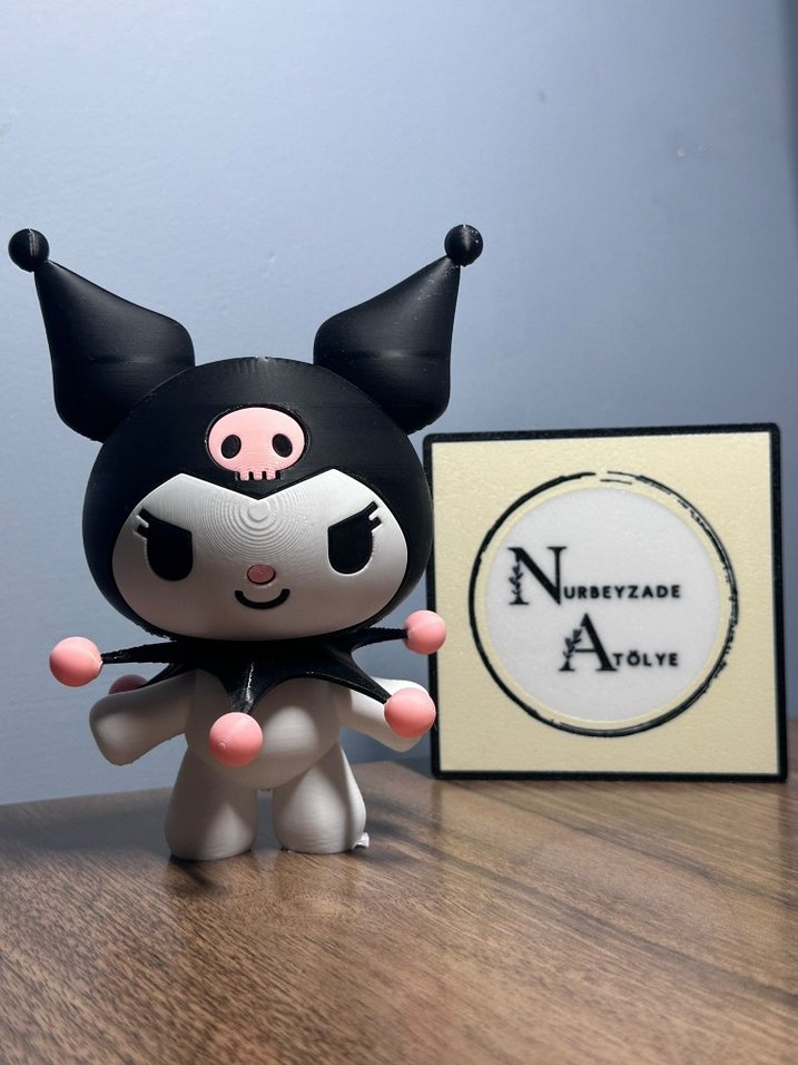 Bu siyah Kuromi figürü, başında pembe kafatası detayıyla koyu ve eğlenceli bir tasarıma sahiptir.