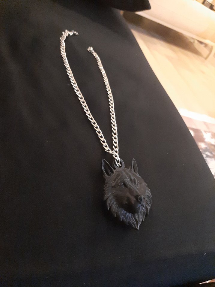 Siyah kurt başlı gotik stilde erkek kolye, rock ve punk tarzına uygun. Zincirle tamamlanmış cesur bir aksesuar.