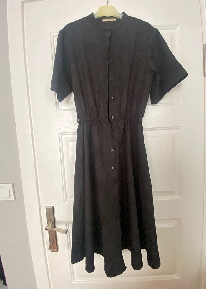 SİYAH KUŞAKLI ELBİSE ÖNDEN DÜĞMELİ 36 BEDEN ÇOK AZ GİYİLDİ