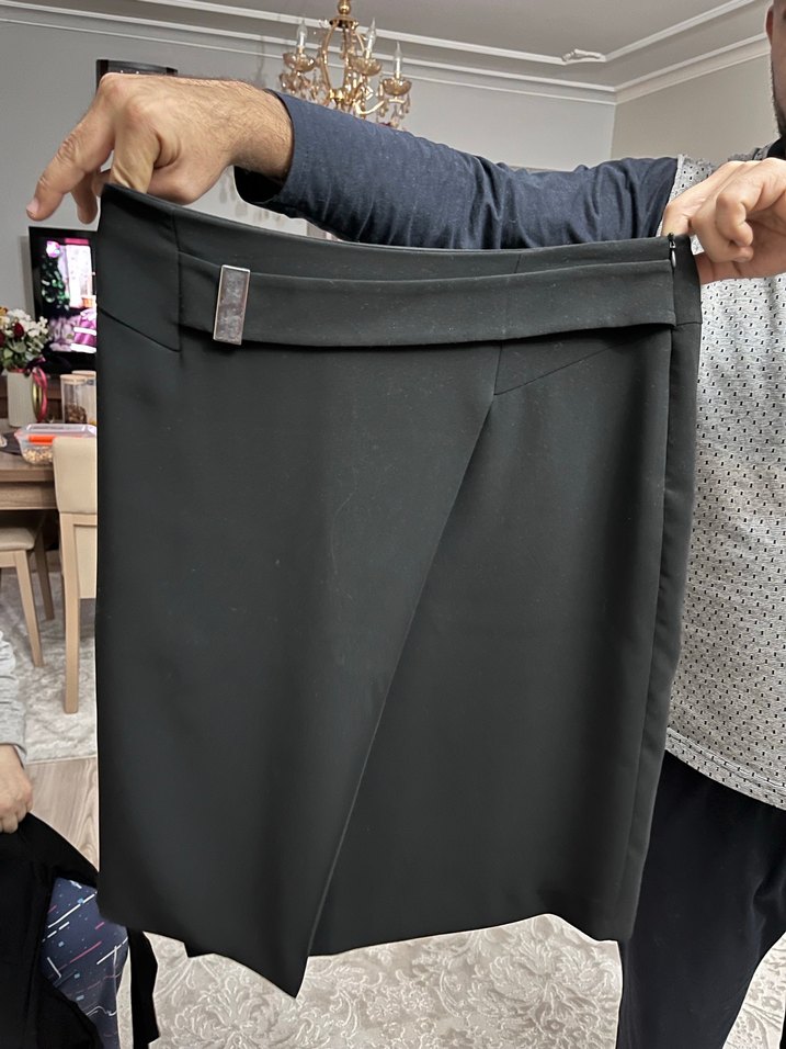 Siyah kuşaklı midi hamile eteği, düz ve desensiz tasarıma sahip, regular fit ve sentetik kumaştan üretilmiştir. Günlük kullanıma uygundur.