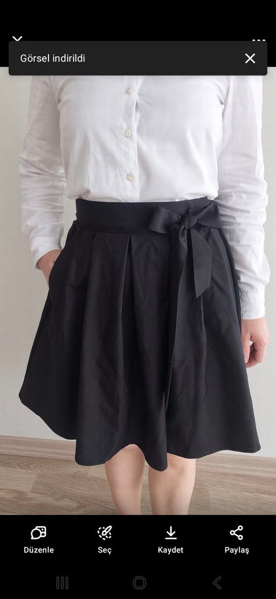 Siyah Kuşaklı Midi Hamile Eteği