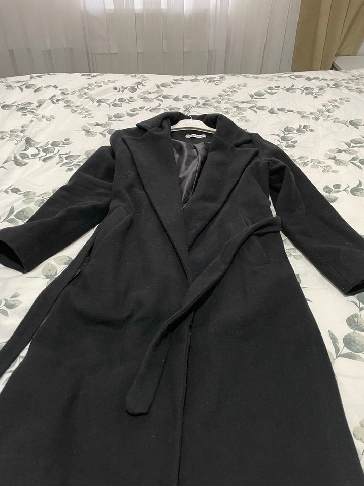 Siyah uzun kaban, kuşaklı ve astarlı olup klasik ve şık bir görünüm sunar. Yakalı ve uzun kolludur.