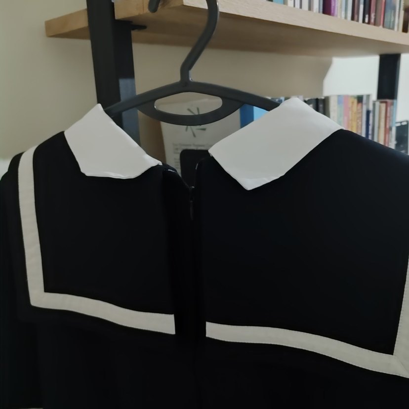 lacivert renk, beyaz yakalı, fermuarlı, baskılı ve kısa kollu denizci elbise . özel günümüzde 1 kez tercih edildi .