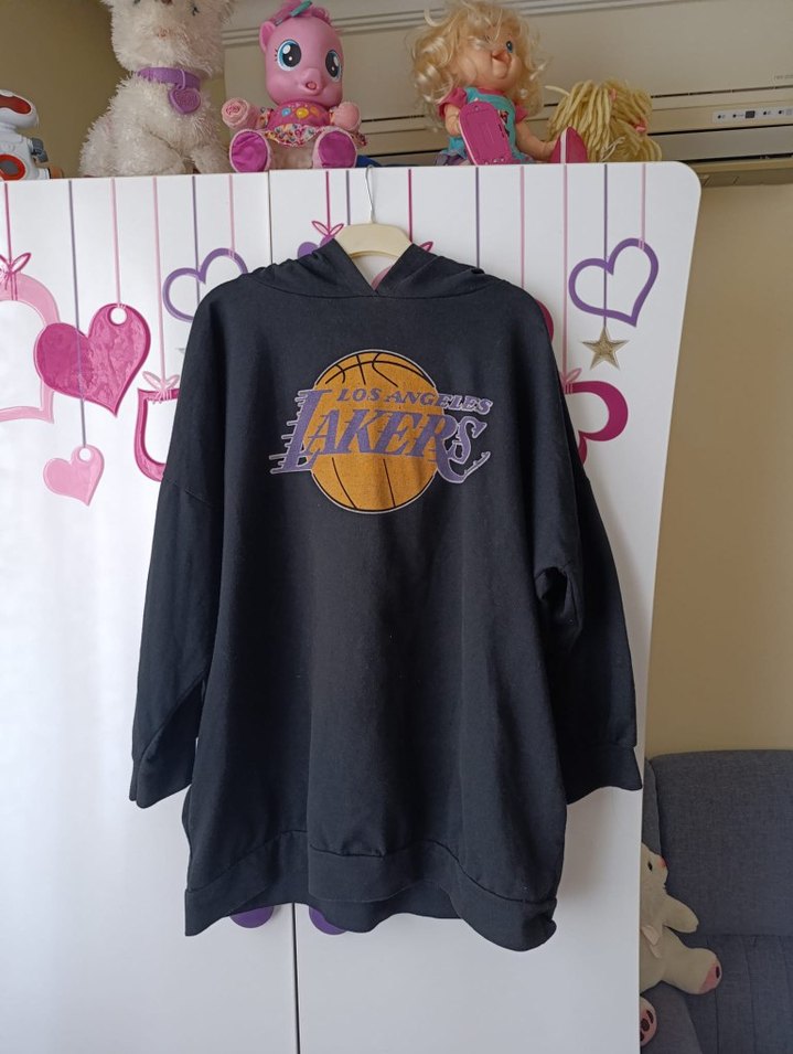 Siyah Lakers Kapüşonlu Oversize Sweatshirt