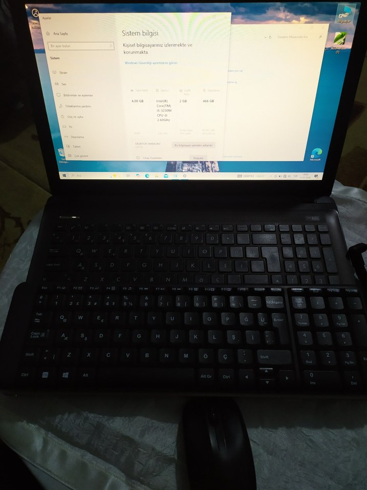 Sistem bilgisi ekranı açık siyah laptop bilgisayar. Klavye ve fare ile birlikte. laptop un bazı tuşları çalışmıyor Bluetooth klavye ve fare ile birlikte gönderilecektir