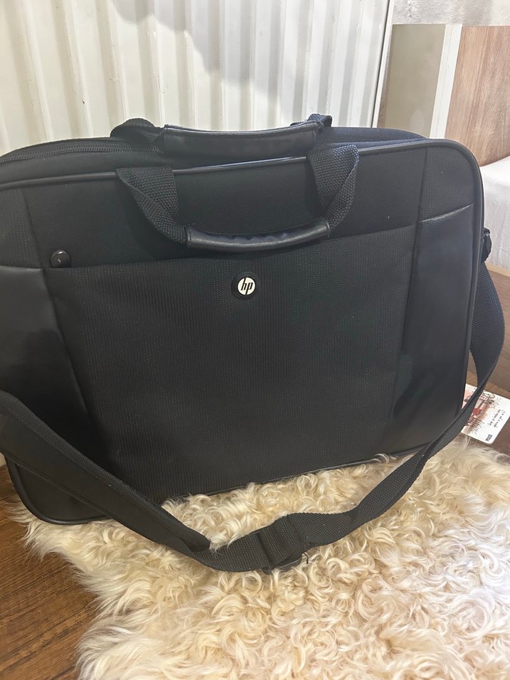 Siyah deri detaylı laptop çantası, fermuarlı ve ofis kullanımı için uygundur, klasik, orijinal HP markasına aittir. Hiç bir sorunu yoktur
